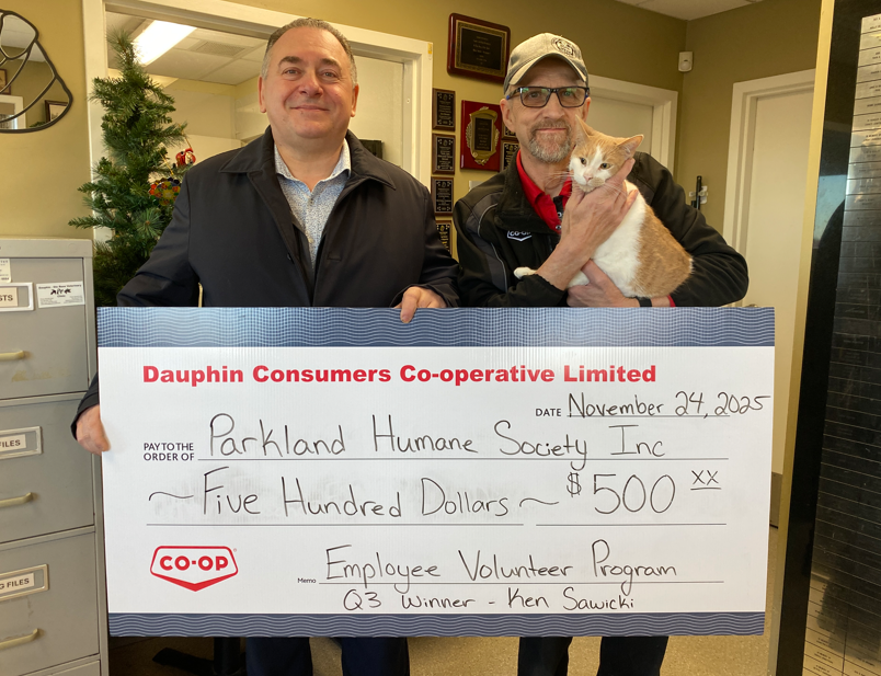 Courtney Seitter, Grocery department, volunteers for a variety of Co-op events as well as in the community. She has chose the Parkland Humane Society Inc. to make a donation for the Q1 draw. " I chose this organization because they do so much for animal welfare."